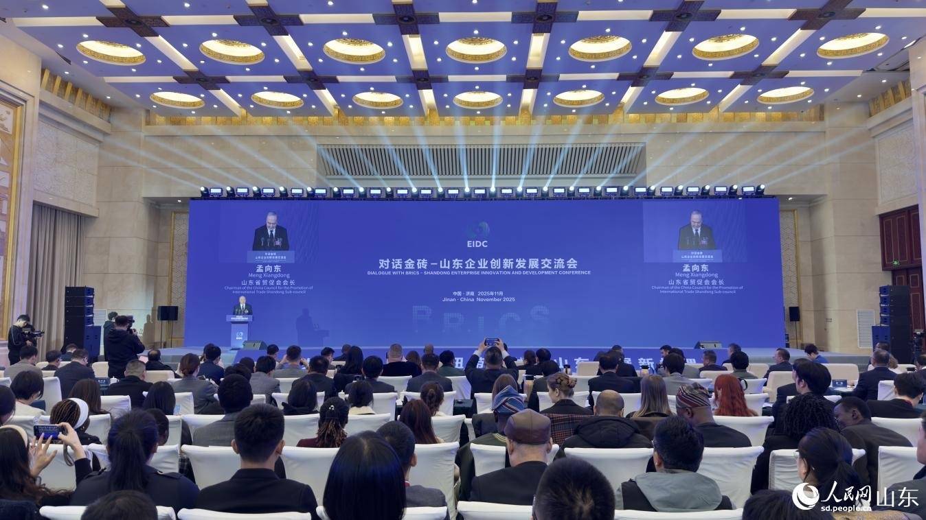 人民网济南11月10日电 11月10日下午,由山东省贸促会主办的“对话金砖——山东企业创新发展交流会”在济南举行。活动以“共筑金砖合作新纽带 共享山东发展新机遇”为主题,来自巴西、俄罗斯、南非、沙特阿拉伯、埃及、阿联酋、埃塞俄比亚、马来西亚、越南、白俄罗斯、乌兹别克斯坦、刚果(金)、博茨瓦纳等30多个国家和地区的50余家商协会组织、企业,以及约180家国内企业维嘉资本,共400余位嘉宾参加交流。
